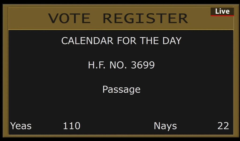 THANK YOU Minnesota House of Representatives for passing our bill HF3699 on a 110-22 vote on April 13th! You can watch introductory remarks from lead author, Rep. David Gottfried, via YouTube here –> https://www.youtube.com/watch?v=dQBafCtXNsE&t=2849s