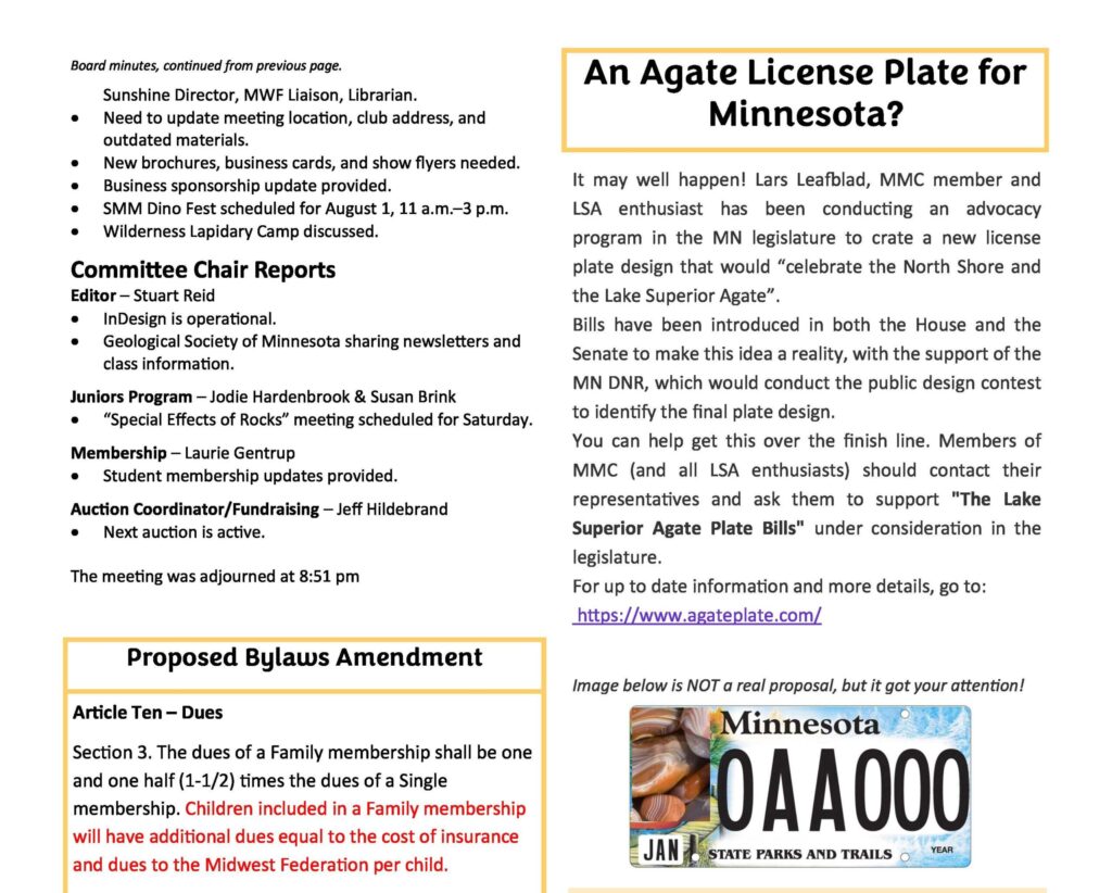 Please contact your MN legislators and ask them to vote yes on “the Agate Plate” bill this WEEK! Thank you!!